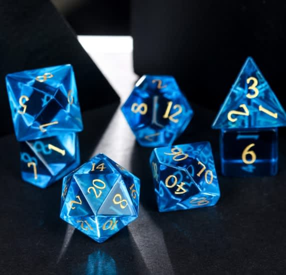 CHC: 16mm Gemstone Poly Dice Set (7) – Dark Blue with Gold Numbers